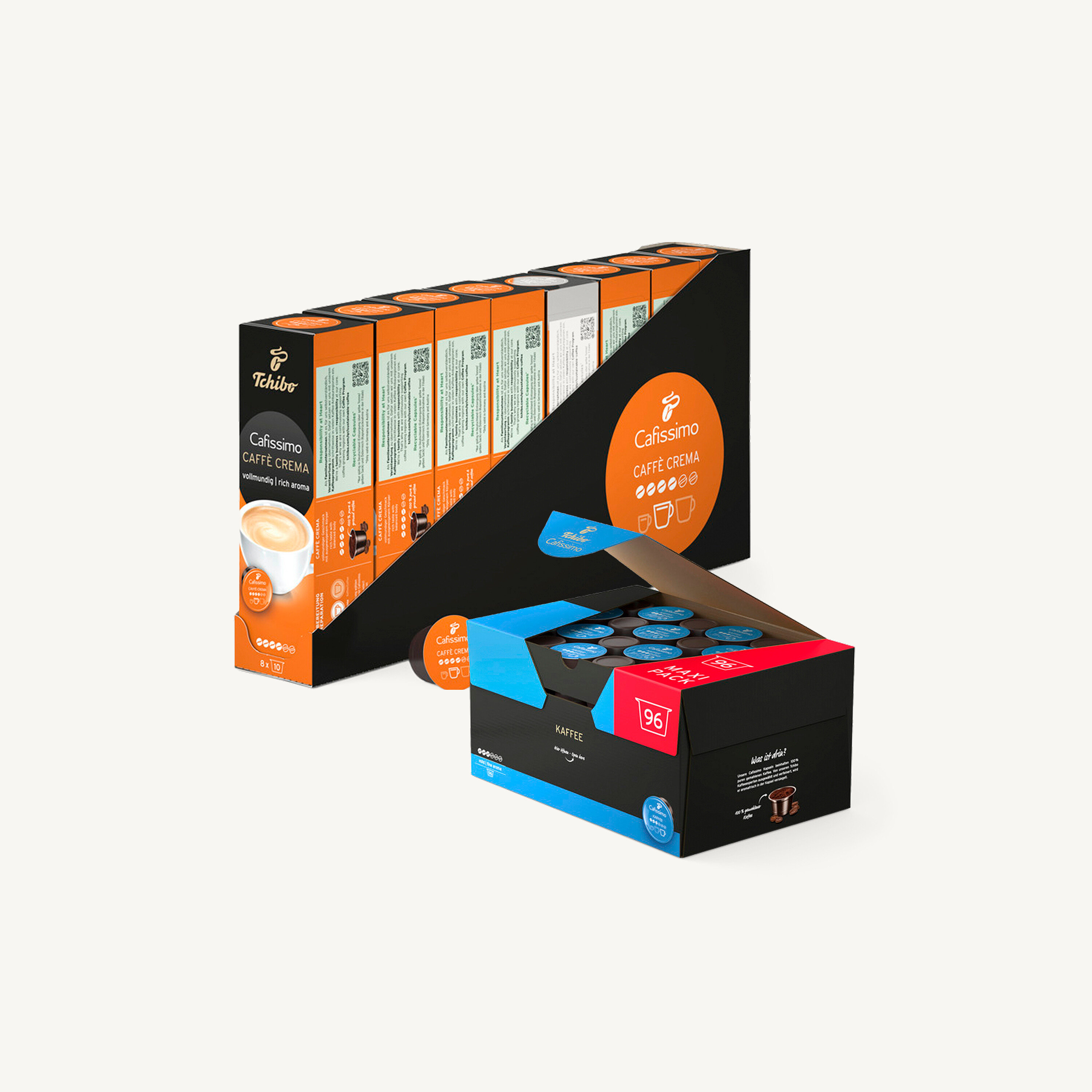Mehr Inhalt, mehr sparen: Mit den Cafissimo Großpackungen genießen Sie länger und sparen pro Kapsel umso mehr, je größer die Packung ist.