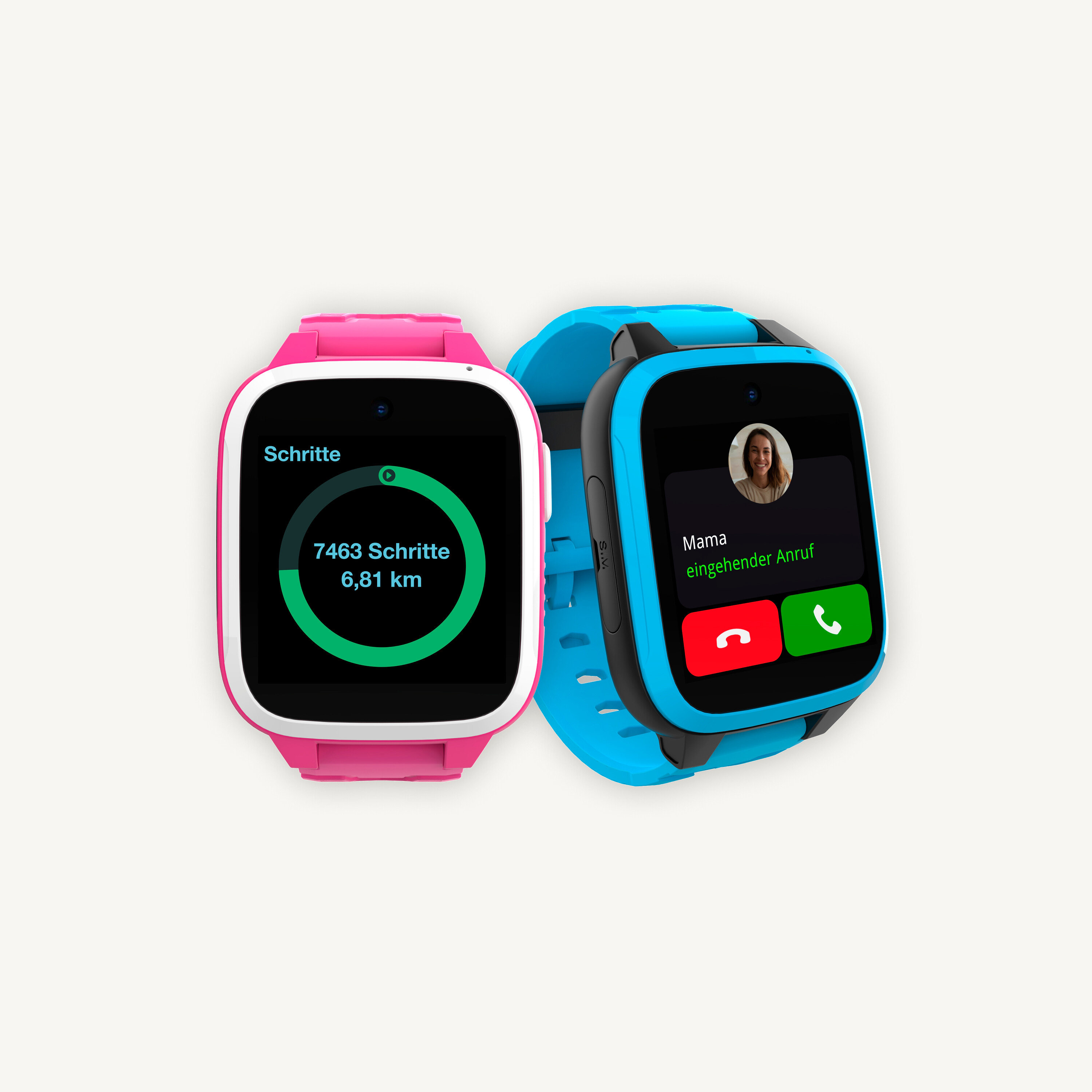 Beide Kids Watch Modelle lassen sich individuell auf das Nutzungsverhalten Ihres Kindes anpassen. Über die App lassen sich die Kontakte, die GPS-Ortung sowie der Schulmodus einrichten, während ihr Kind direkt an der Uhr die Uhrzeit-Darstellung sowie das Display-Design aussuchen kann.