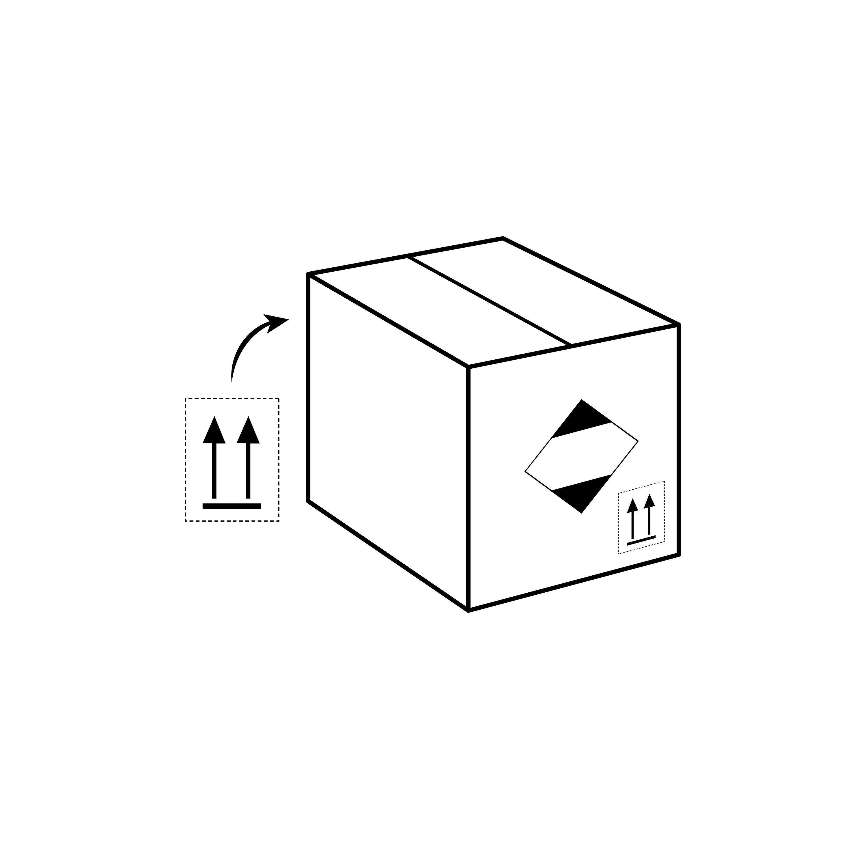 Jedes Versandstück mit einem Produkt, das in die Kategorie "Gefahrgut in begrenzter Menge" fällt, muss mit der LQ-Raute einseitig und mit den Ausrichtungspfeilen an zwei sich gegenüberliegenden Seiten versehen sein.