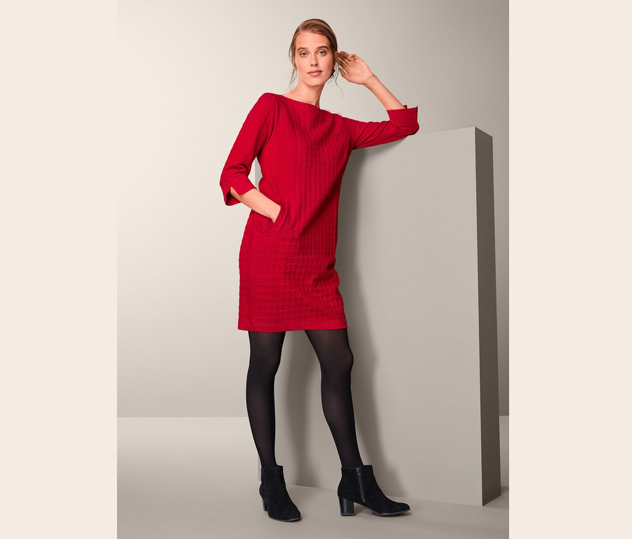 • Bequemes Kleid in strukturierter und elastischer Qualität mit Baumwollanteil