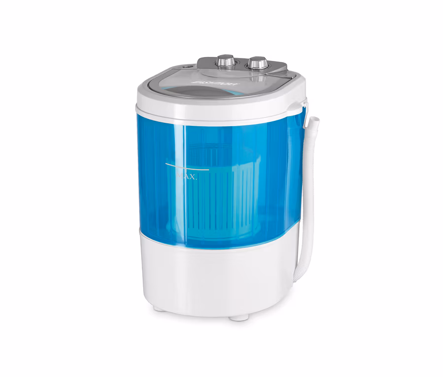 Wer zu Hause weder Platz für eine Waschmaschine noch einen Gemeinschaftswaschkeller hat, kann mit der EASYmaxx-Mini-Waschmaschine mit Wasch- und Schleudertimer zumindest für die schnelle Wäsche zwischendurch auf den Gang ins Waschcenter verzichten. Das kompakte Gerät mit einem Gewicht von gerade mal fünf Kilogramm ist hervorragend geeignet für T-Shirts, Unterwäsche, Socken und Co. bis maximal drei Kilogramm – und es braucht auch keinen speziellen Anschluss, ein Wasserhahn reicht. Auch das Entleeren des Schmutzwassers passiert komfortabel über den dazugehörigen Schlauch. Die Waschmaschine ist leicht zu verstauen und zu transportieren – ideal auch beim Camping und auf Reisen. Und bei Nichtgebrauch kann sie platzsparend in der Kammer verschwinden.
