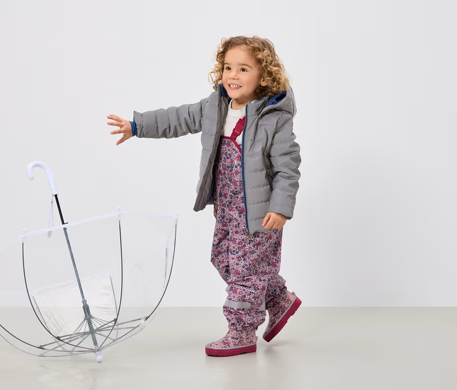 Kinder-Thermo-Regenhose mit Fleecefutter, geblümt