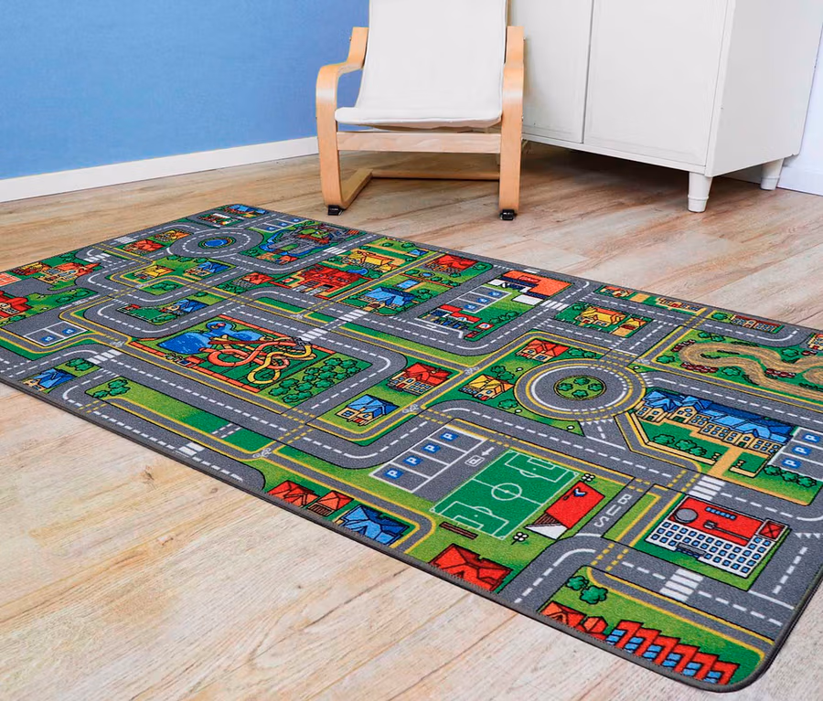 - Detailreicher Autoteppich, der zum fantasievollen Spielen einlädt
