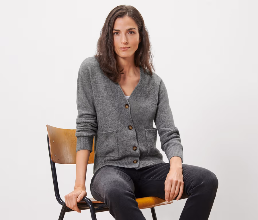 Strickjacke mit Wolle, grau meliert