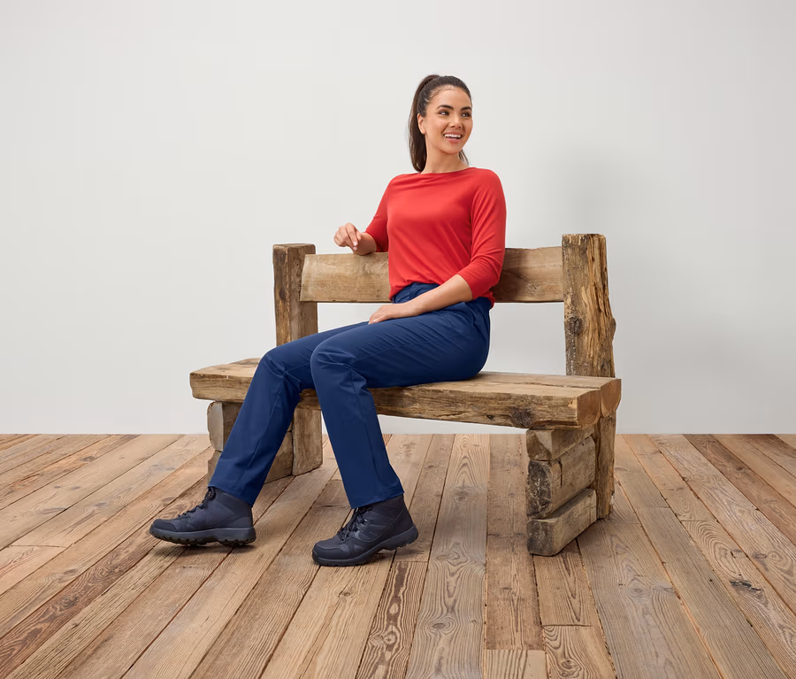 • Komfortbund mit elastischen Einsätzen und Gürtelschlaufen