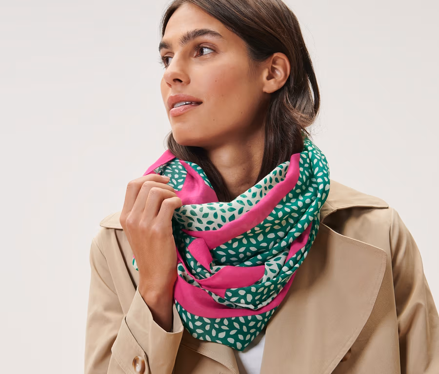 - Grün-weißer Alloverprint mit pinkfarbenen Streifen