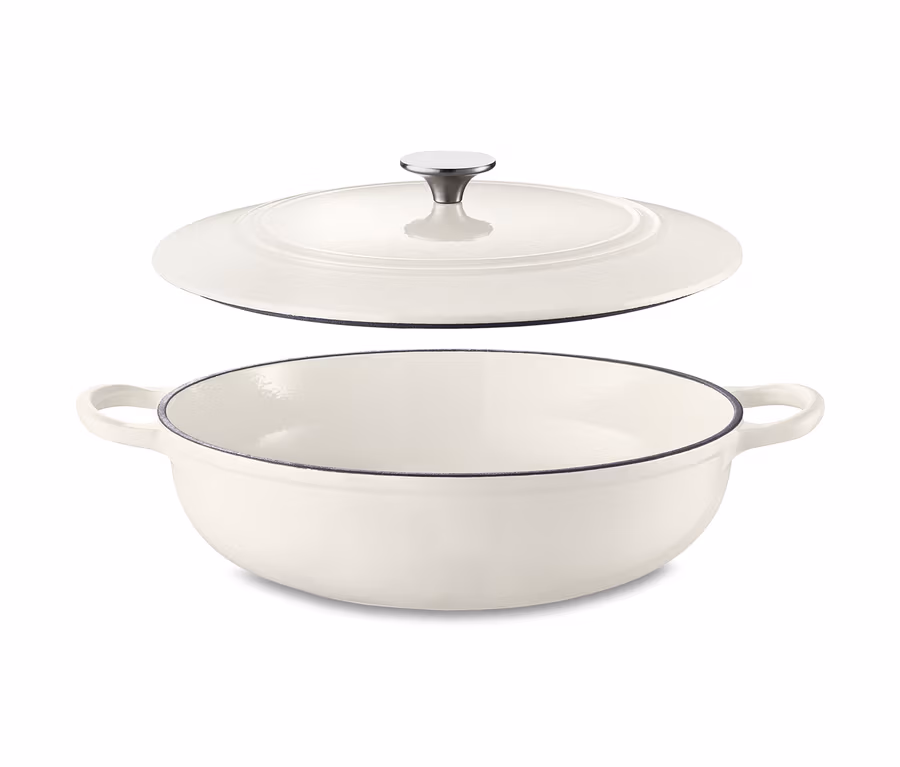 Schmorgerichte wie Ossobuco gehen eigentlich immer – und mit dem richtigen Equipment gelingen sie auch immer. Diese Bräter-Pfanne ist dafür perfekt: Sie ist aus emailliertem Gusseisen gefertigt und ihr Deckel hat einen Knauf aus hochwertigem Edelstahl. So ist sie nicht nur für alle Herdarten inklusive Induktion geeignet, sondern auch für höchste Backofentemperaturen.