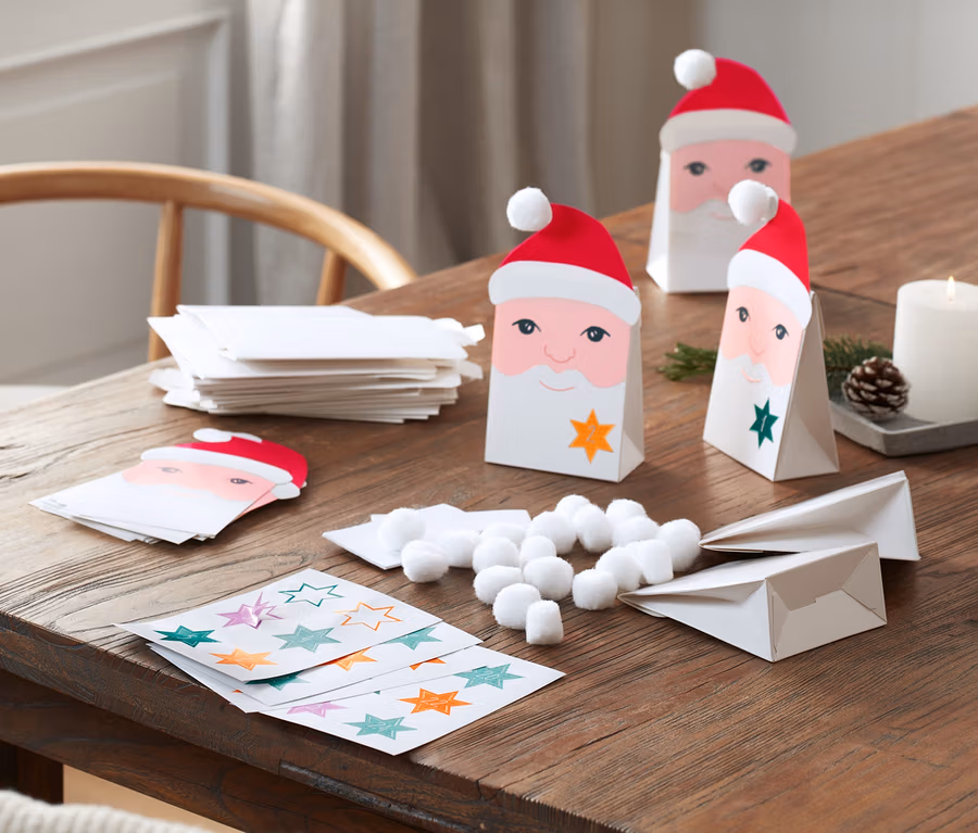 • Schachteln müssen nur noch aufgefaltet und mit Weihnachtsmännern, Bommeln sowie Nummern beklebt werden