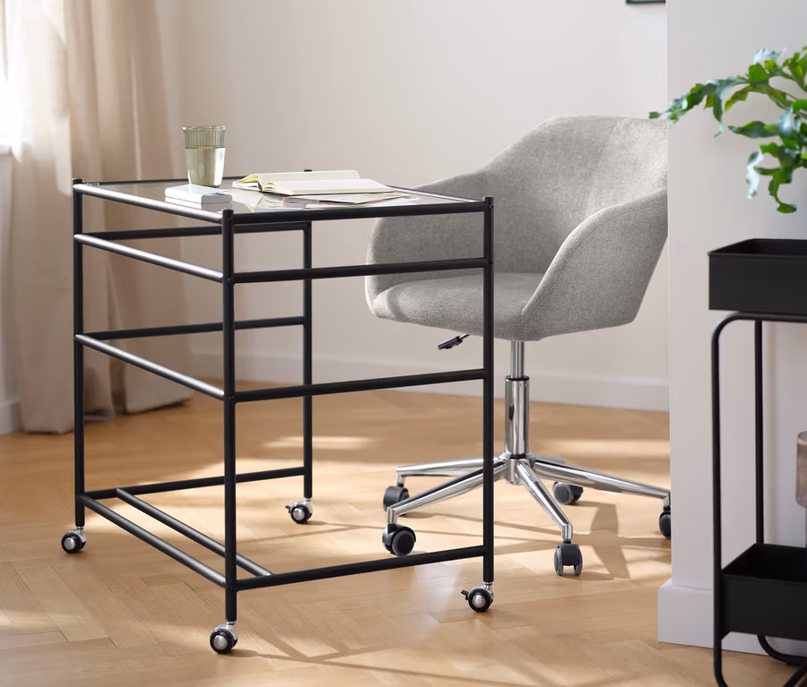 - Mit pulverbeschichtetem Metallgestell in Matt-Schwarz