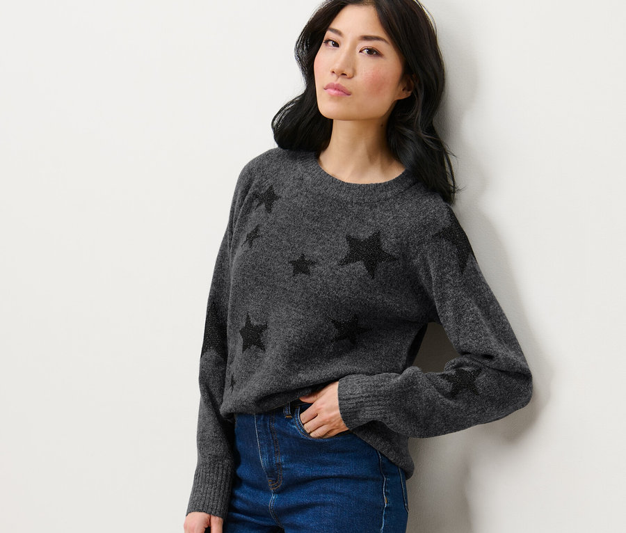 - Dunkelgrau meliert mit schwarzen, glitzernden Sternen