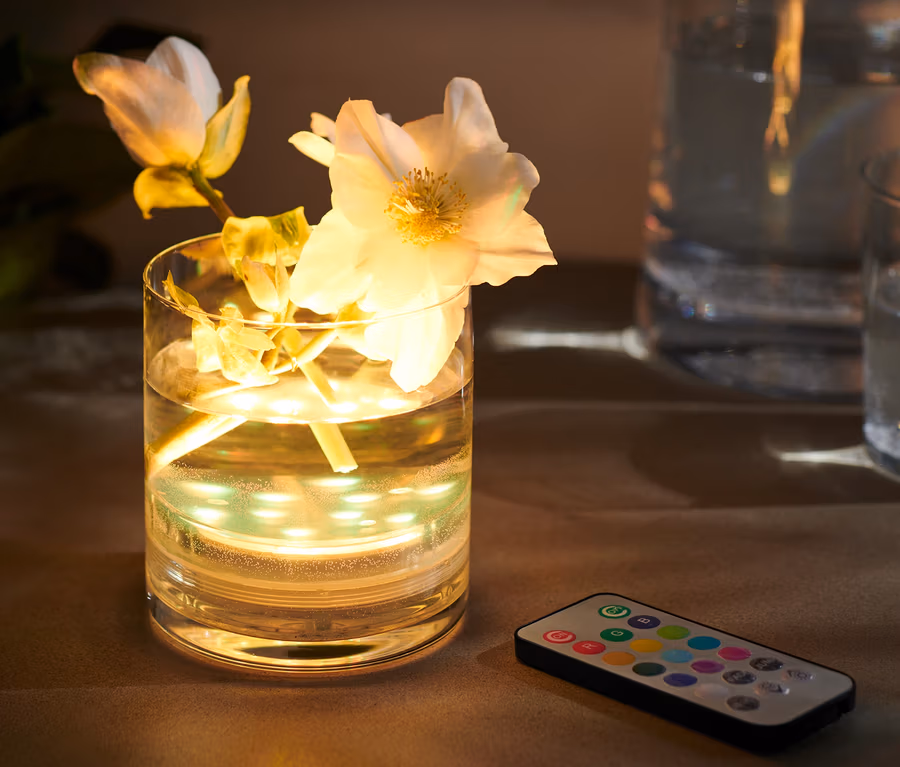 - Batteriebetrieben (inkl. Batterien für Leuchten und Fernbedienung)