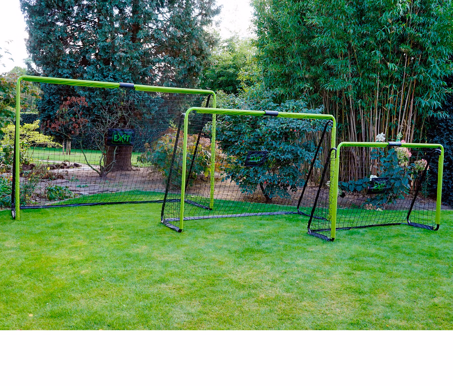 Es ist im Handumdrehen aufgebaut, das Netz ist lückenlos am Rahmen befestigt und mit seinem coolen Design kann es sich auch optisch sehen lassen. Das Tor ist mit seinem galvanisierten, pulverbeschichteten Rahmen besonders witterungsbeständig und die drei Heringe sorgen für einen festen Stand – egal, wie oft es in der Bude klingelt.