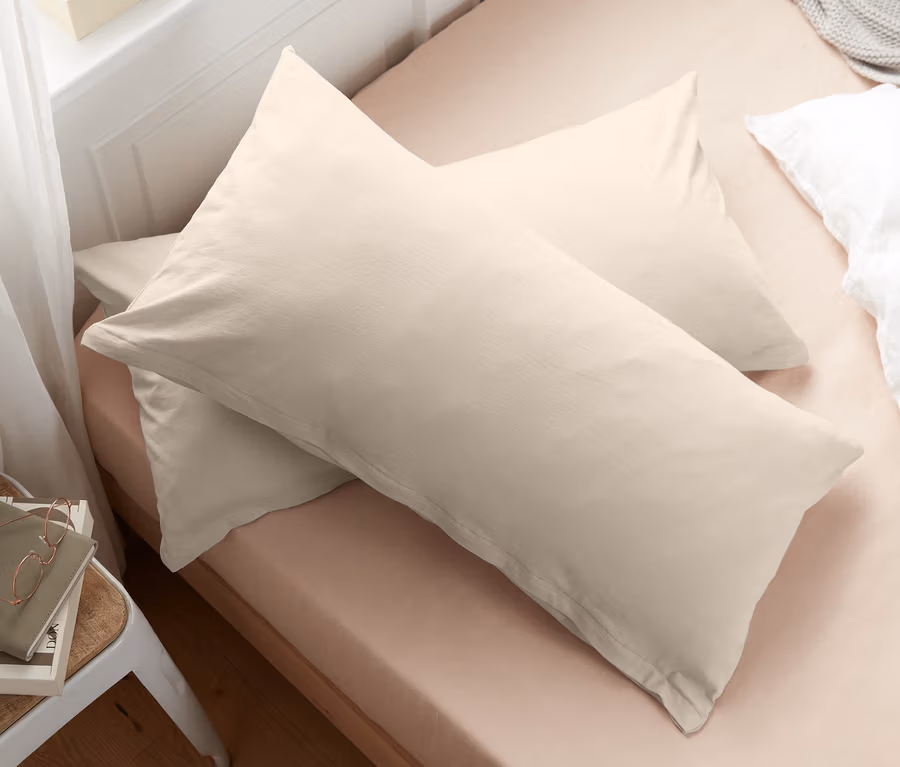 2 Jersey-Kopfkissenbezüge, je ca. 80 x 40 cm, cremefarben