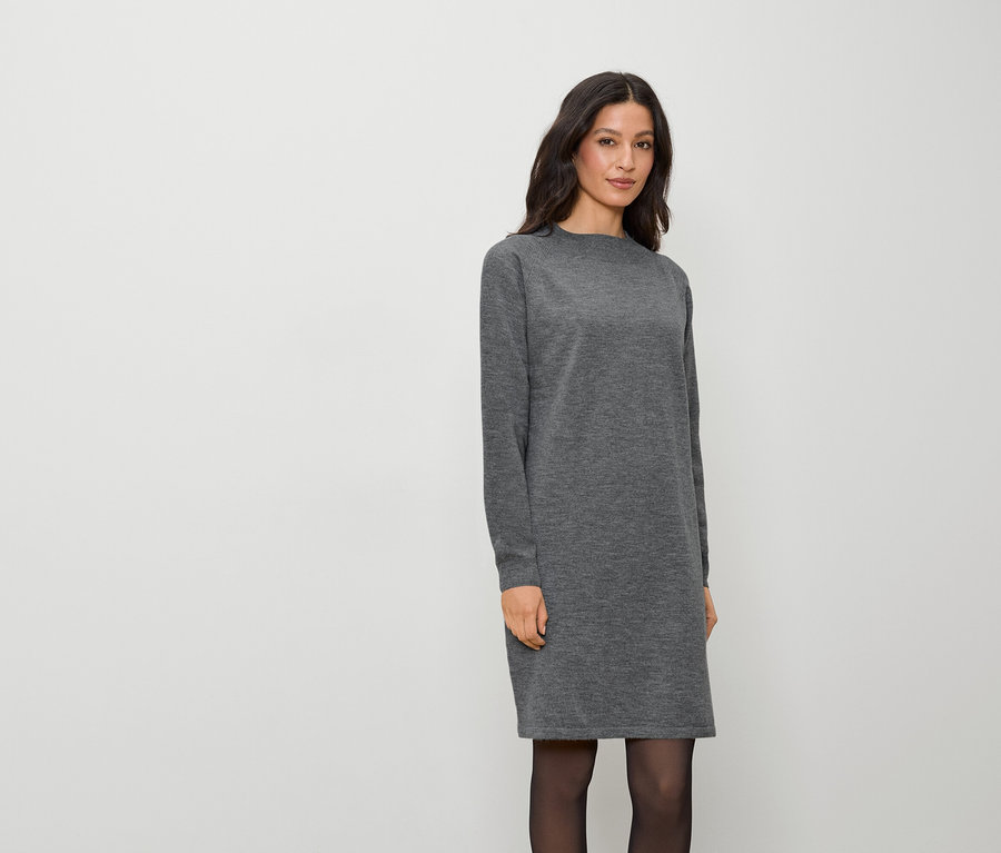 • Dieses Strickkleid achtet das Tierwohl von Schafen