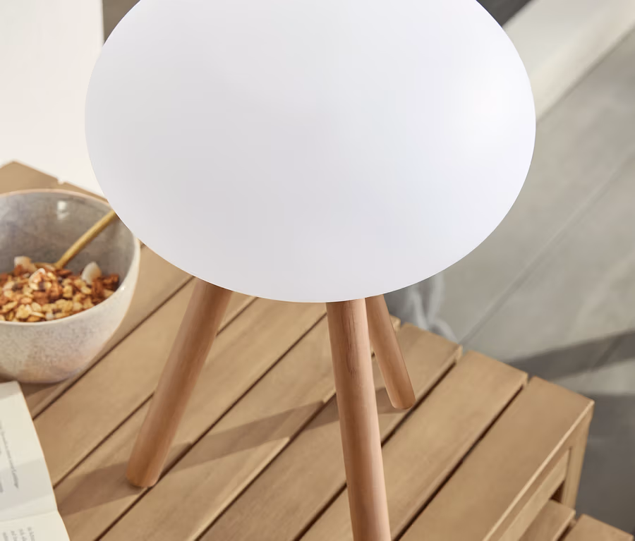 LED-Akku-Tischleuchte mit Beinen aus Massivholz