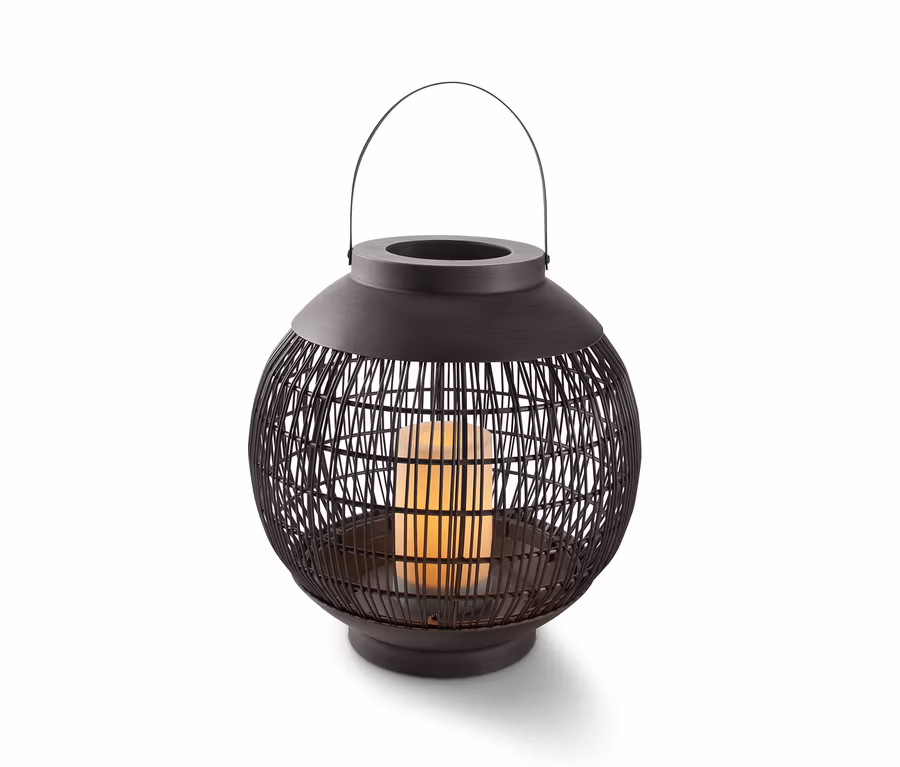Diese LED-Outdoor-Laterne setzt stimmungsvolle Akzente und lässt sich dank Batteriebetrieb dort aufstellen, wo man ihr warmweißes Licht gerade gerne hätte. Herzstück ist die LED-Leuchte, die mit ihrem atmosphärischen Flackern genauso gut wie eine echte Kerze ist – nur pflegeleichter. Mit dem Timer schaltet sich die Leuchte nach etwa sechs Stunden automatisch ab und nach weiteren 18 Stunden geht sie ebenso automatisch wieder an. Man kann sie aber auch mit dem Schalter an der bodenschonenden Unterseite bedienen.