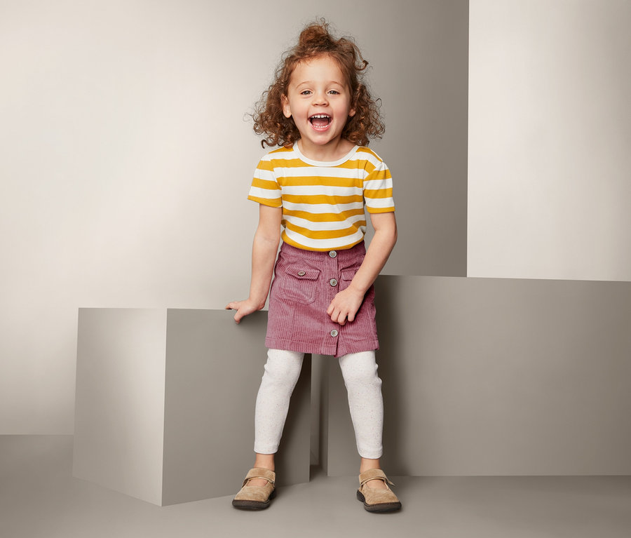 Der robuste Stoff ist wieder voll angesagt – und natürlich auch bei der Kinder-Kleidung angekommen. Dieser Cordrock mit zwei aufgesetzten Taschen und einer dekorativen Knopfleiste ist besonders stylisch und bietet Kindern mit seiner leichten A-Form gleichzeitig optimale Bewegungsfreiheit.