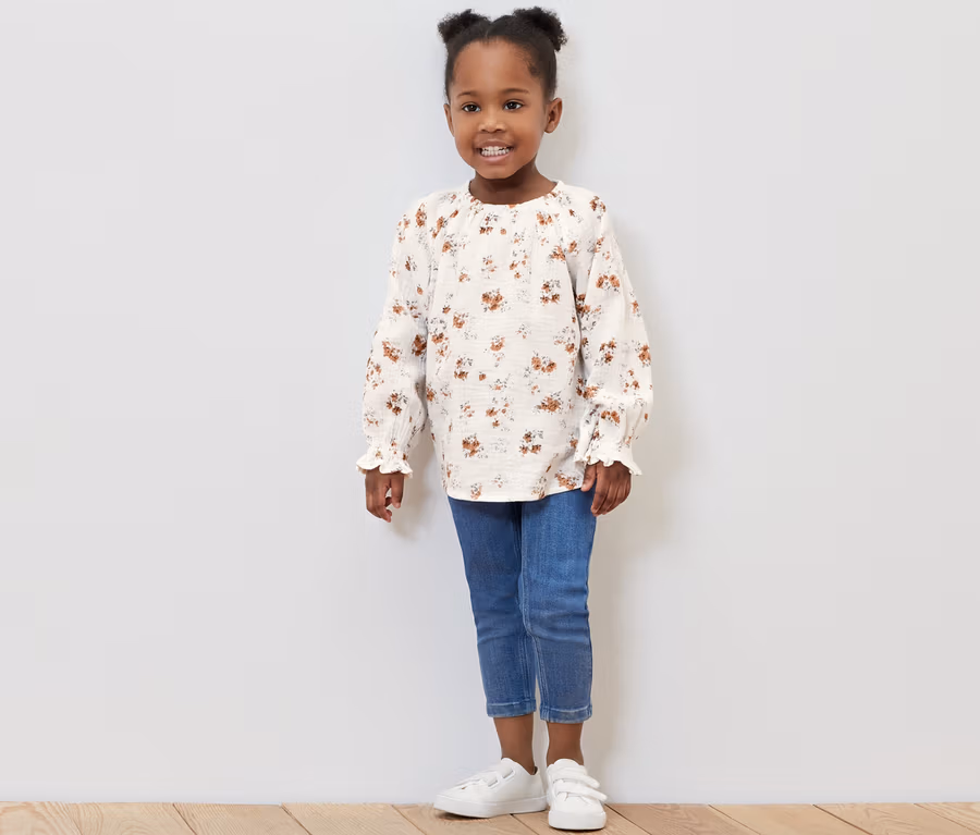 ...leider noch etwas zu weit und lang bei einer Größe von 120 cm (und sehr schmal) . Aber die Kids wachsen ja schnell ;) Schöner