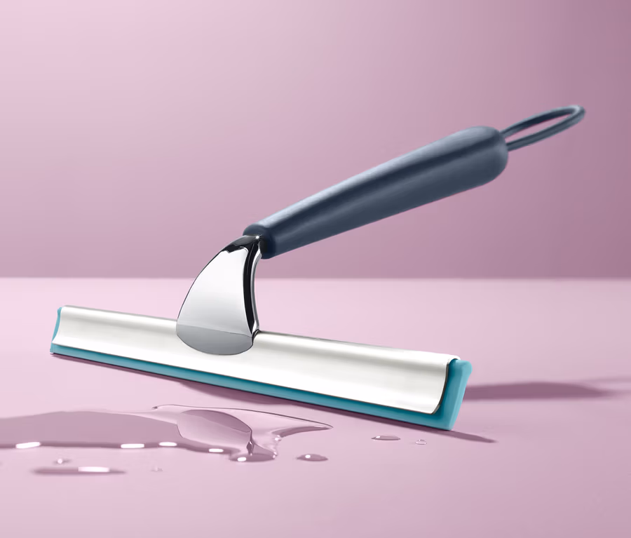 Duschkabine, Spiegel und Fliesen streifenfrei sauber: Mit diesem Badwischer bekommen glatte Oberflächen aller Art das perfekte Finish. Sie lassen sich mit seiner Gummilippe und dem Griff aus rutschhemmendem Kunststoff besonders einfach trockenwischen und erstrahlen immer wieder in neuem Glanz. Der Duschabzieher ist aus hochwertigem Edelstahl gefertigt und hat am Griffende eine Aufhängeöse.