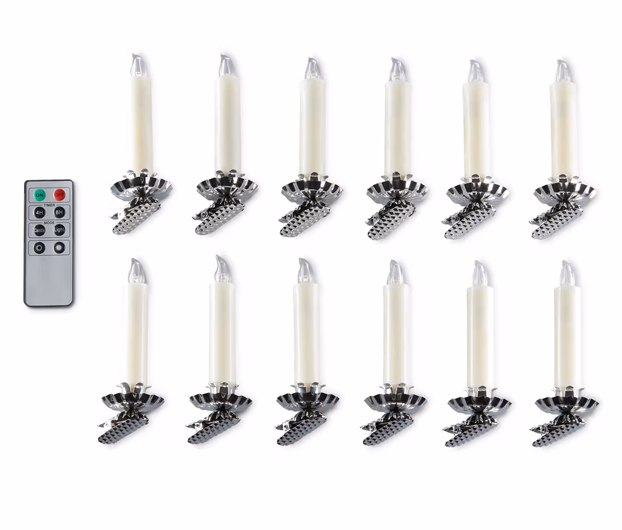 12 LED-Weihnachtsbaumkerzen, cremeweiß