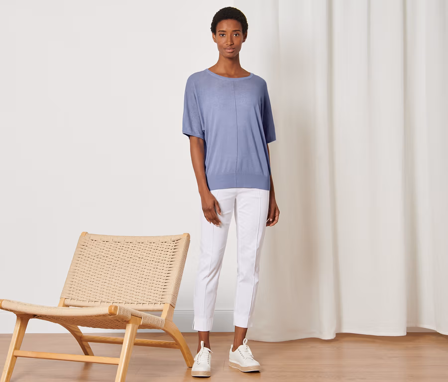 - Schmale Rippbündchen an Ausschnitt und Ärmelabschluss
