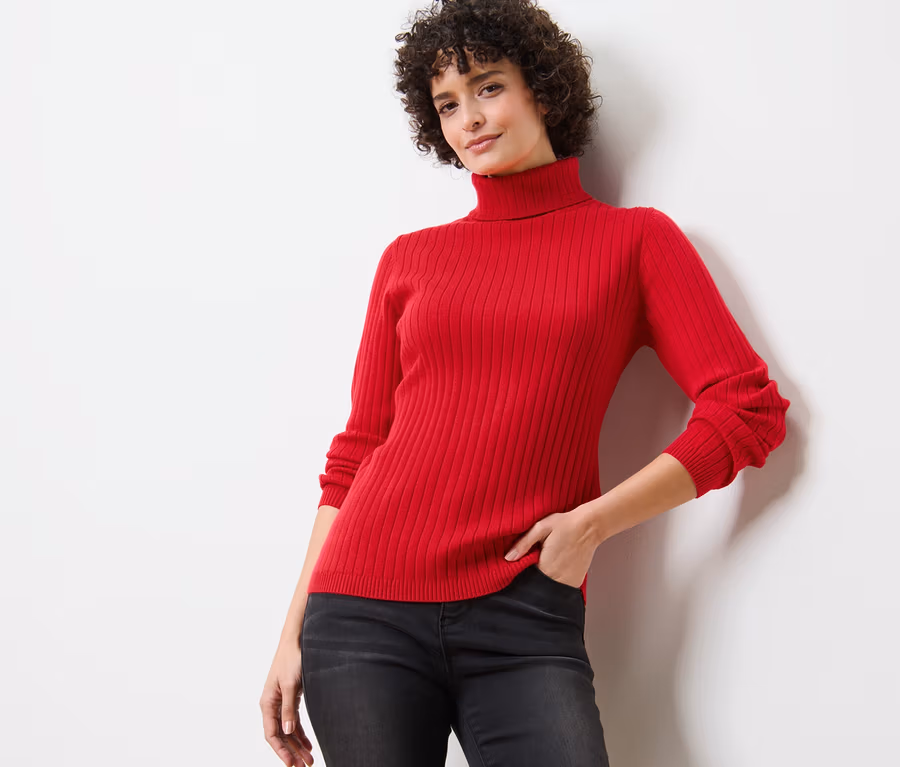 Gerippter Rollkragenpullover, rot