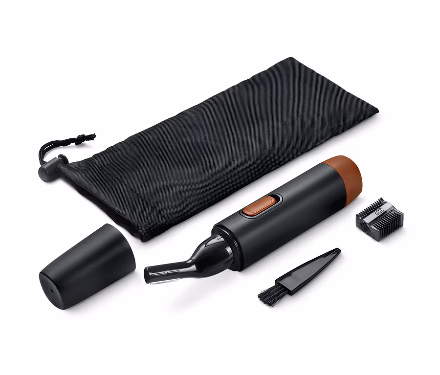 - Inkl. Reinigungspinsel, Aufbewahrungsbeutel, Trimmaufsatz, Kammaufsatz, 1 Batterie LR06 (AA) und Bedienungsanleitung