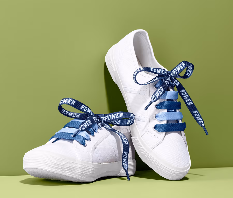 Es ist zwar nur ein kleines Detail – dafür aber ein ziemlich cooles: Die zweifarbigen Schnürsenkel für Kinder-Schuhe sind an ihren Enden mit einem »POWER«-Schriftzug verziert und verleihen insbesondere einfarbigen Sneakern so einen ganz neuen Look. In der Länge von etwa 120 Zentimetern passen sie in Schuhe von Größe 25 bis 35 und lassen sich problemlos in der Länge anpassen: einfach an beiden Enden die gleiche Länge abschneiden, mit Knoten sichern – fertig.