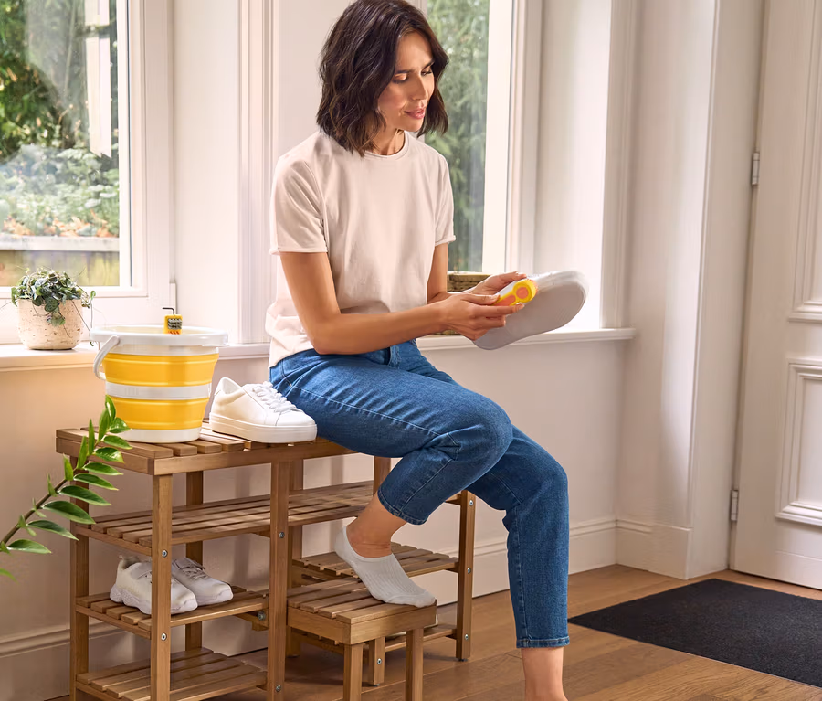 - Klapptritt zum bequemes Anziehen der Schuhe