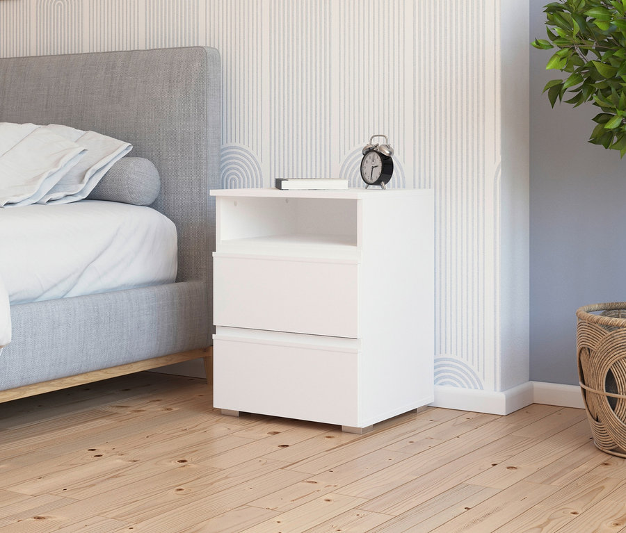 - Zeitloser Nachttisch mit Nische und 2 Schubladen