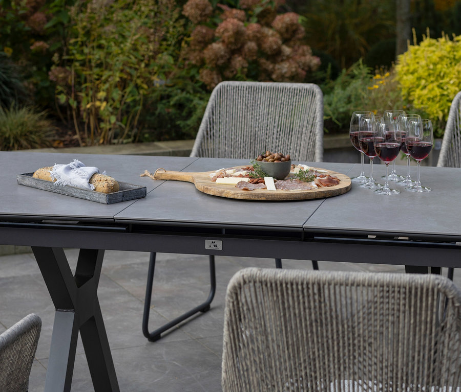 - Tischplatte hellgrau. Beine und Gestell anthrazit