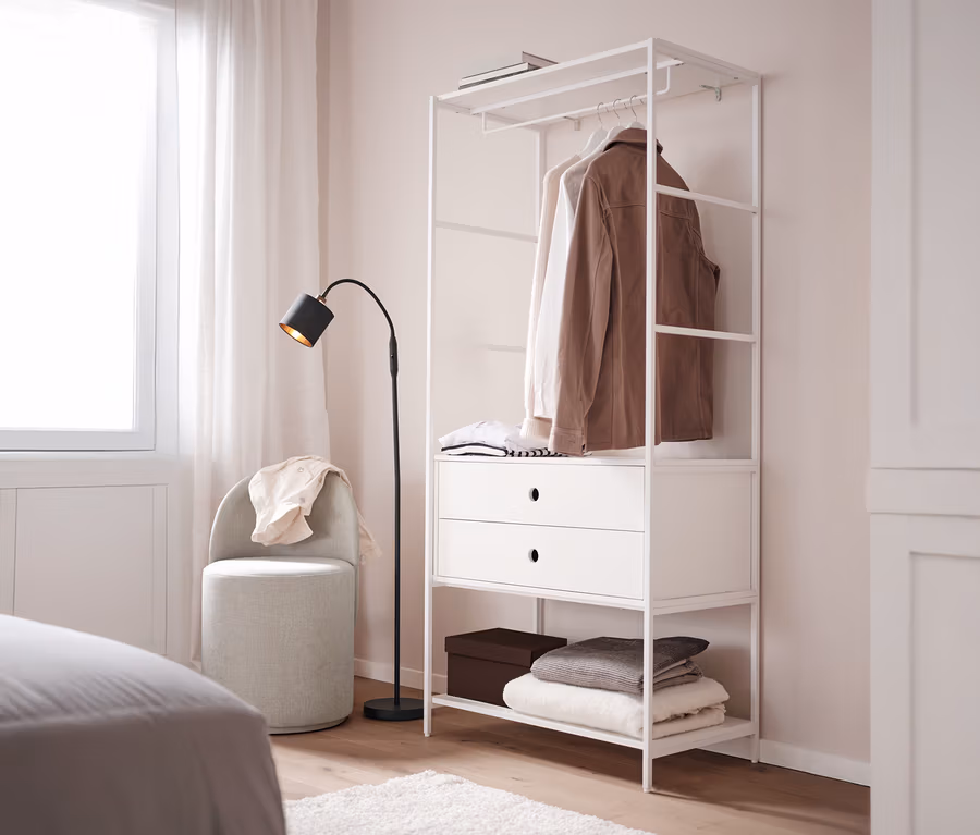 Ablageflächen, Kleiderstange und Schublade je max. 5 kg