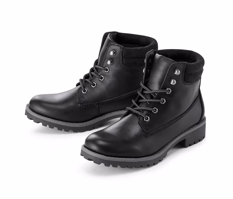 In der Übergangszeit stellt das Wetter besondere Herausforderungen an Schuhe, Stiefel und sonstiges Schuhwerk. Diese Boots aus chromfrei gegerbtem Leder brauchen vor schwierigem Wetter nicht zurückzuschrecken und sind dabei zeitlos modisch. Mit diesen Stiefeln macht die Übergangszeit Spaß! Ob durch den Wald, die Stadt oder über Felder, ist dabei egal. Die Stiefel mit Schnürösen sitzen fest am Fuß und bieten dank ihrer profilierten Laufsohle sicheren Halt.