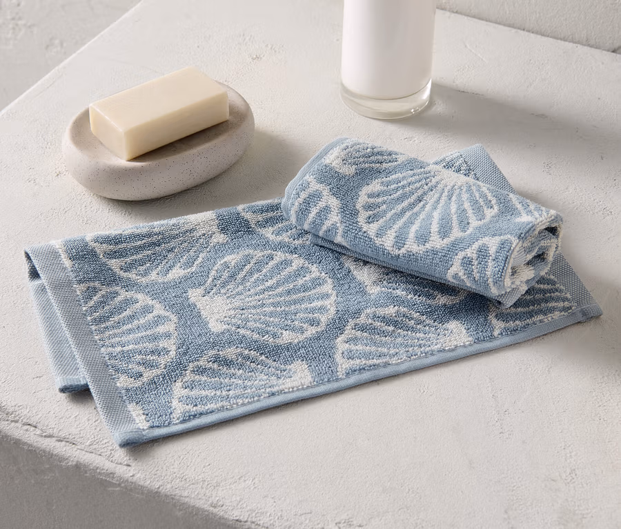- Hellblau mit weißem Muschel-Dessin