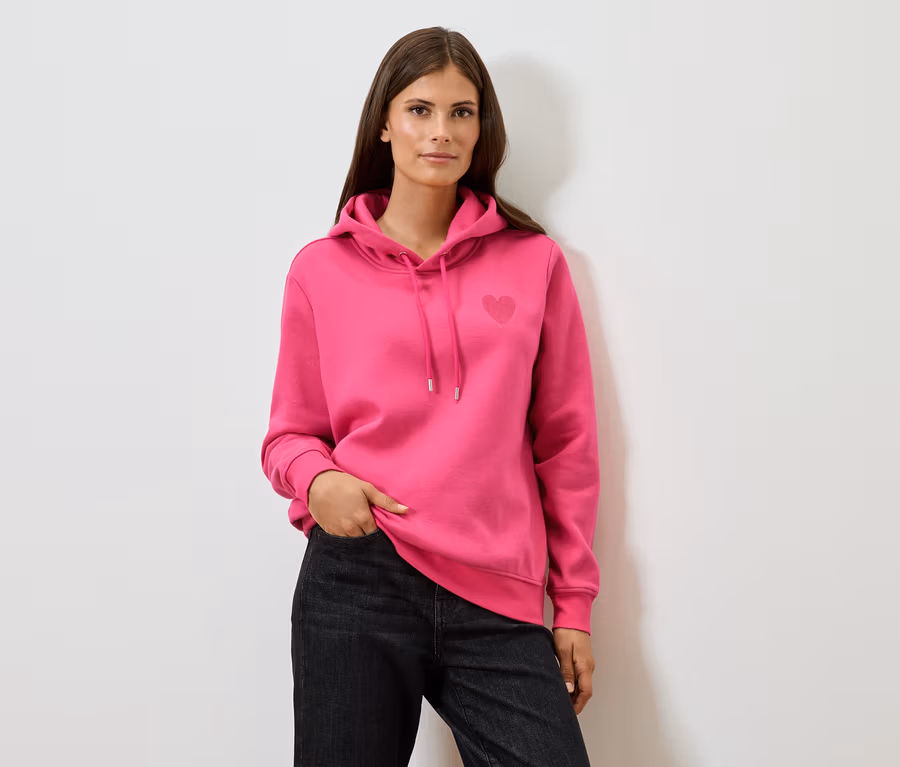 - Elastische Rippbündchen an Ärmelabschluss und Saum