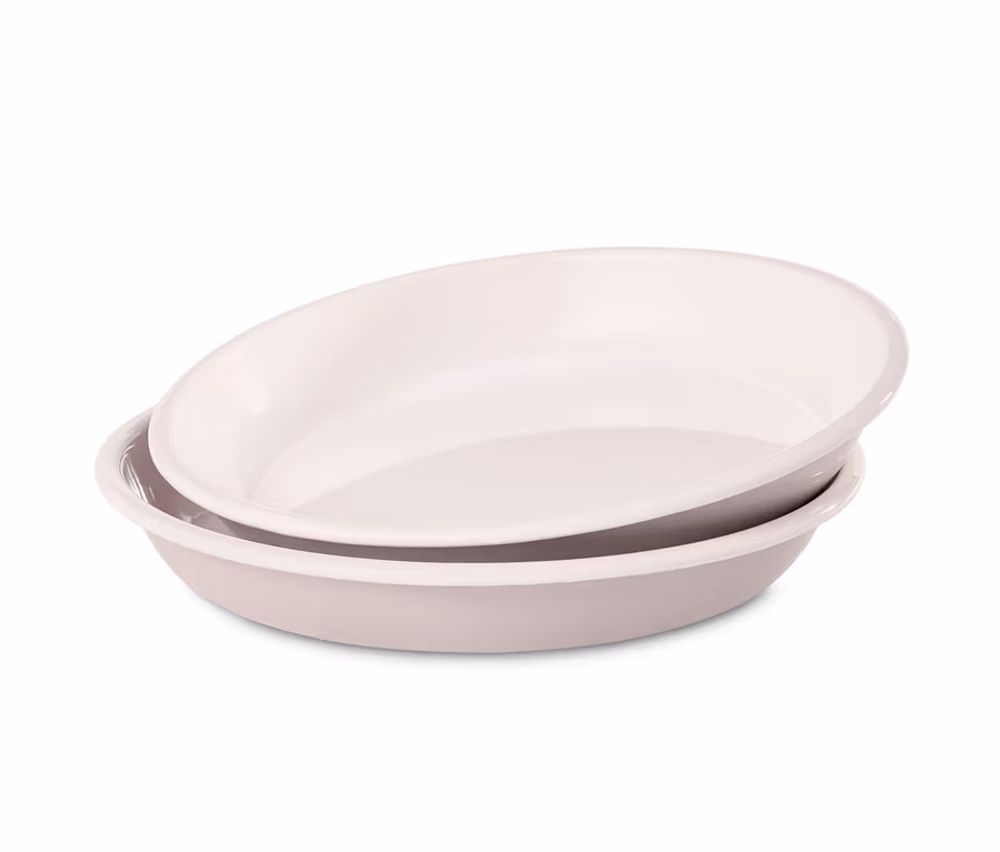 Geschirr aus Emaille ist robust, genügsam und pflegeleicht. So auch diese beiden Teller, deren Oberfläche dreifach emailliert ist, was sie ebenso schnitt- und kratzfest wie geschmacks- und geruchsneutral macht. Die Teller haben einen hohen Rand und sind ofenfest – ideal zum Aufwärmen oder Warmhalten. Sie eignen sich zum Essen oder Servieren kalter wie warmer Speisen und wie alle unsere Emaille-Produkte sind sie korrosionsbeständig – und damit absolut outdoortauglich.