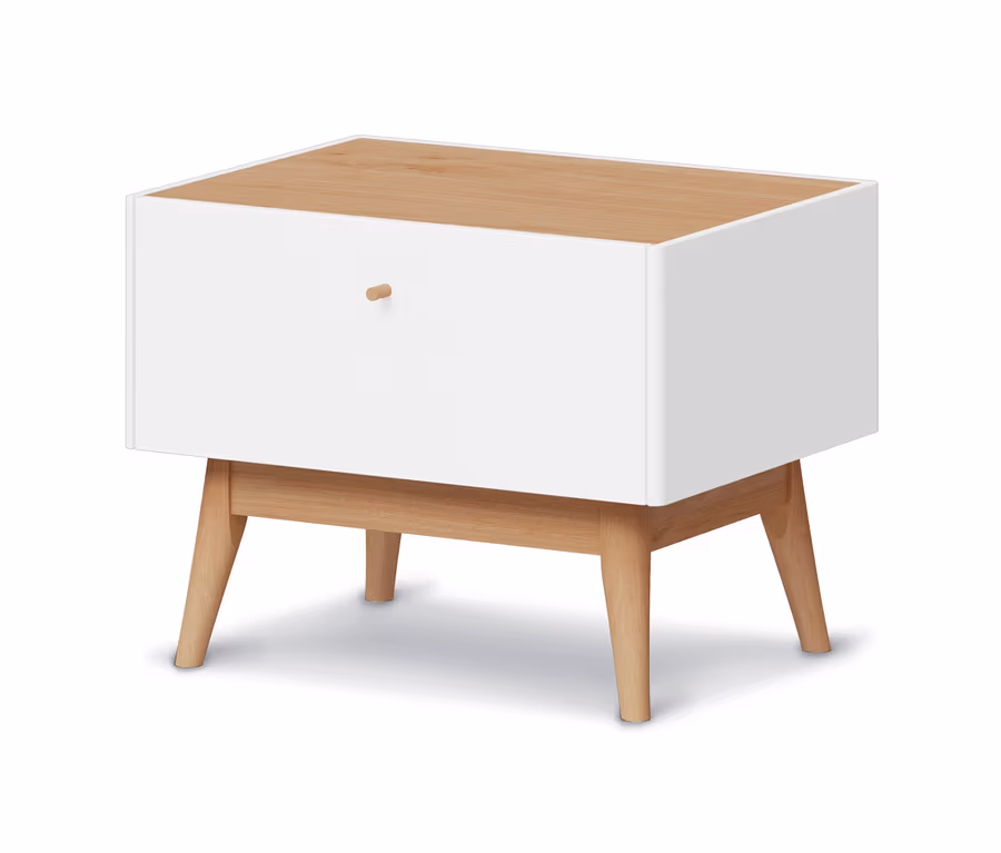- Nachtkonsole in skandinavisch inspiriertem Design mit Massivholzdetails
