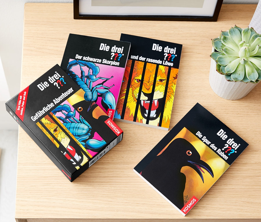 Die Taschenbücher im Schuber sind in dieser Art exklusiv bei Tchibo erhältlich. Das Set enthält drei Bücher und mit ihnen eine gelungene Mischung aus drei Jahrzehnten spannender Ermittlungen: Mit dem „Rasenden Löwen“ gibt es einen der frühen Fälle aus dem Jahr 1974, die „Spur des Raben“ stammt aus dem Jahr 1997 und der „Schwarze Skorpion“ ist von 2004.