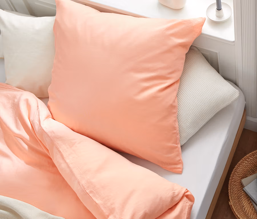 Leinen ist eine Naturfaser, die besonders langlebig und pflegeleicht ist. Ausgeprägte lange Fasern sorgen dafür, dass Leinen nicht flust, dafür aber besonders reißfest und strapazierfähig ist. Durch die natürlich hohe Feuchtigkeitsaufnahme und gute Wärmeleitung fühlt sich Leinen kühl und frisch an. So ist besonders in wärmeren Nächten ein angenehmes Schlafklima gewährleistet.