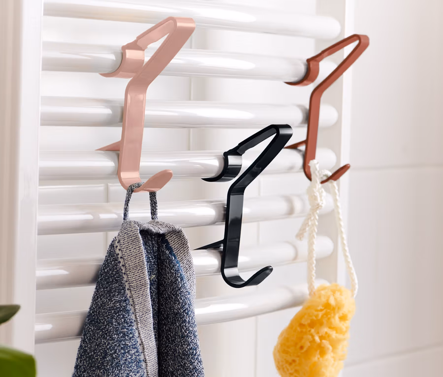 - Einfach zwischen die Handtuchwärmer-Stangen einhängen