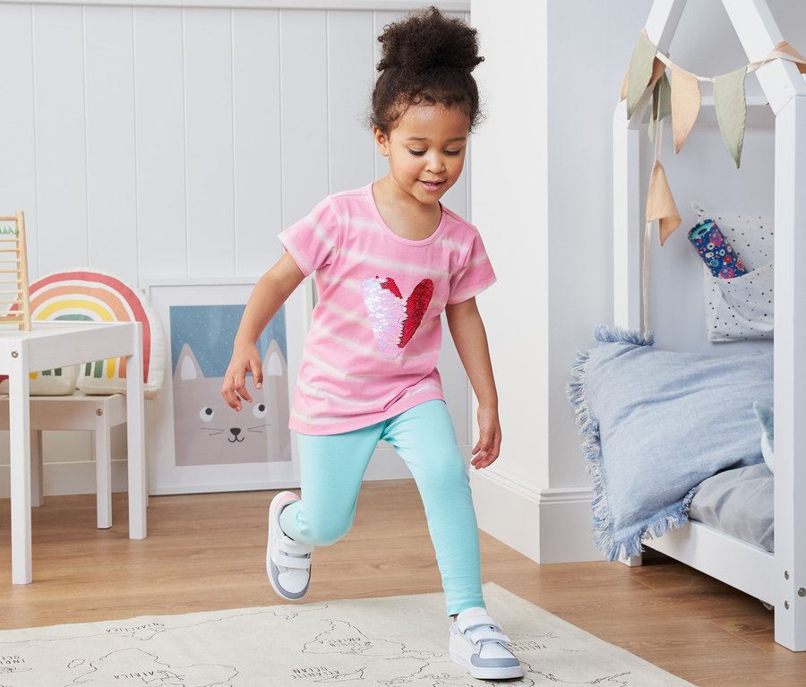- Gr. 86/92 mit platziertem Druck, ab Gr. 98/104 mit Wendepailletten