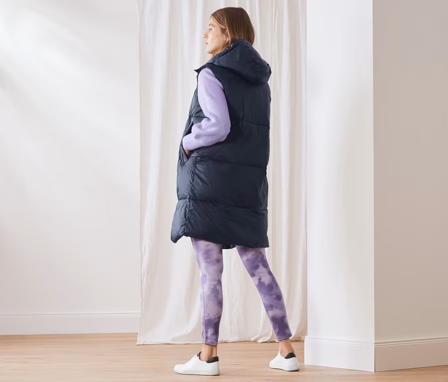 Lange Steppweste mit Kapuze