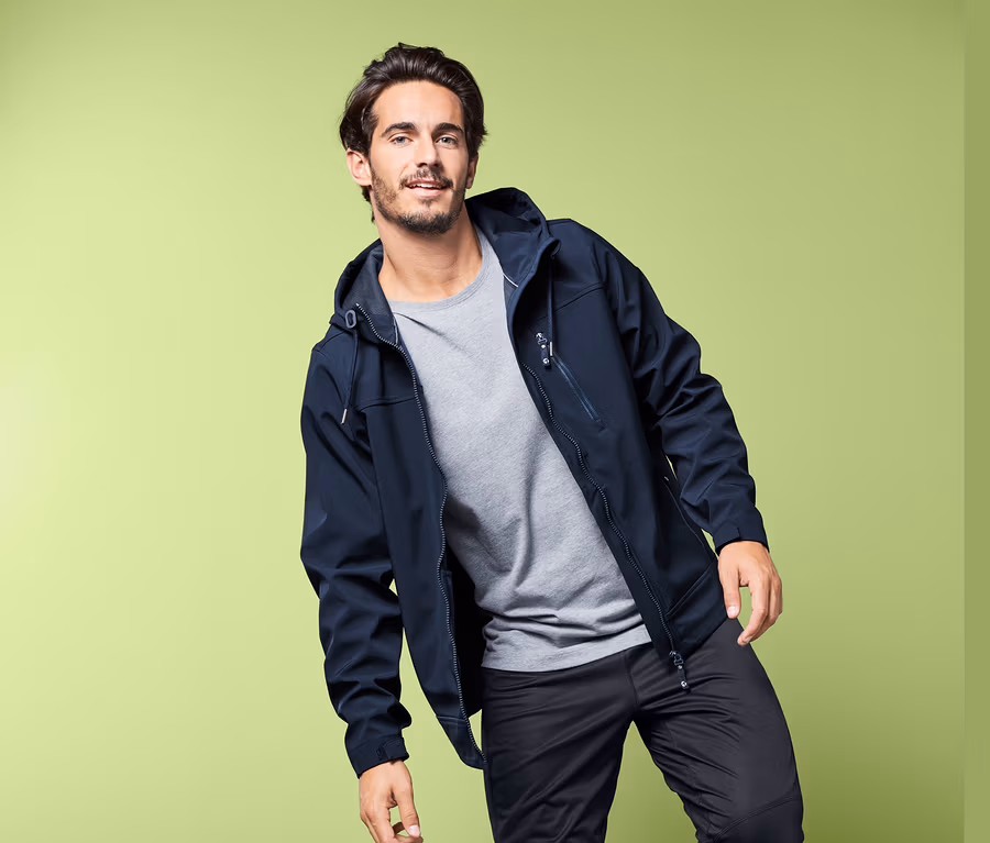 Besonders praktisch an der Softshelljacke sind die vielen Reißverschlüsse. Ob an der Brusttasche, den beiden Eingrifftaschen oder an der Front der Jacke: Überall sorgen sie für einen sicheren Abschluss. Damit alles an Ort und Stelle bleibt, gibt es neben den Reißverschlüssen auch eine weitenverstellbare Kapuze und einen Saum mit Kordelzug und Stoppern.