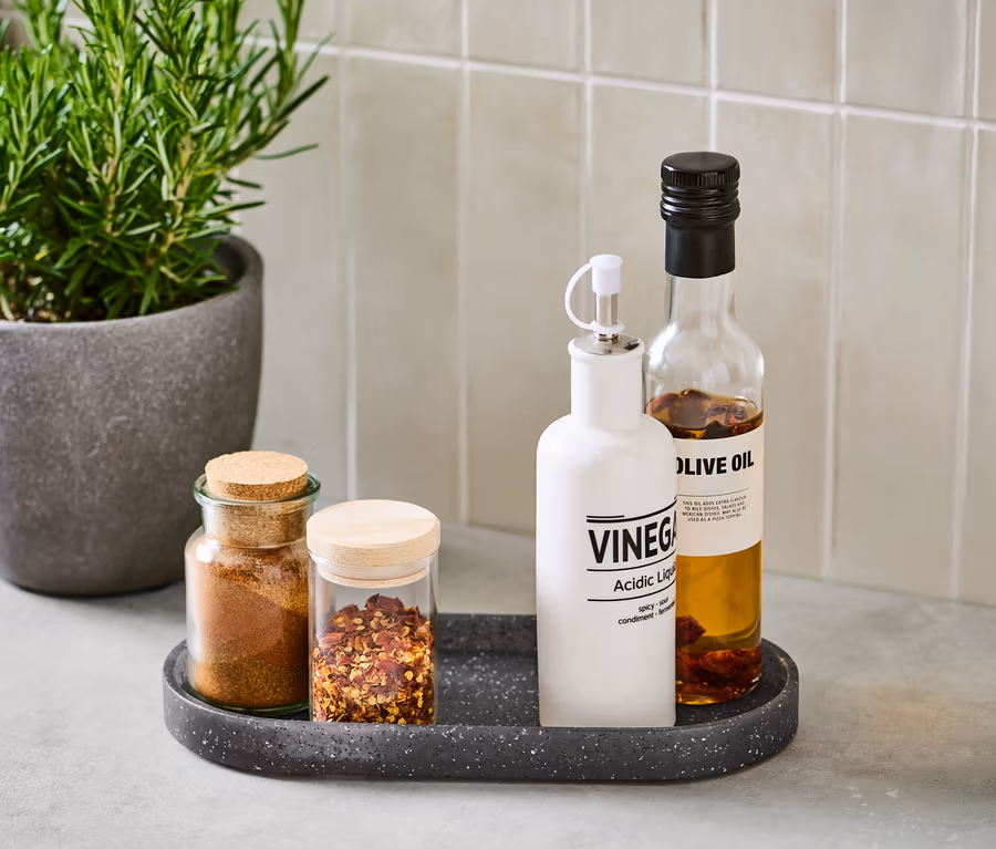 - Dekoratives Aufbewahren von z.B. Gewürzen und Ölen auf der Arbeitsplatte
