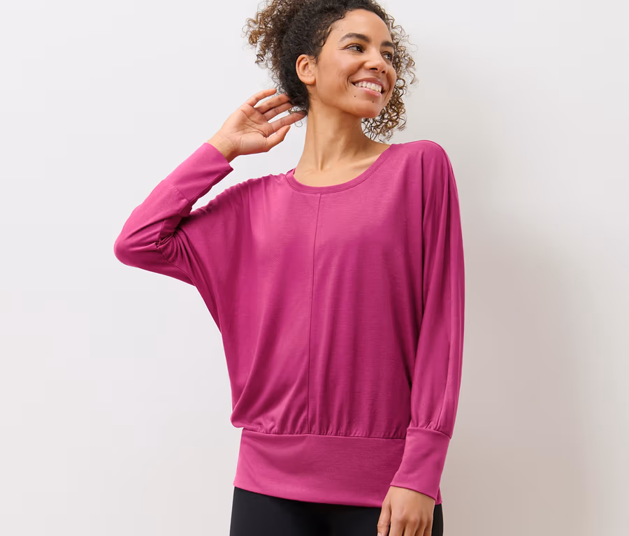 - Mit weit geschnittenen Armen für eine kaschierende Silhouette