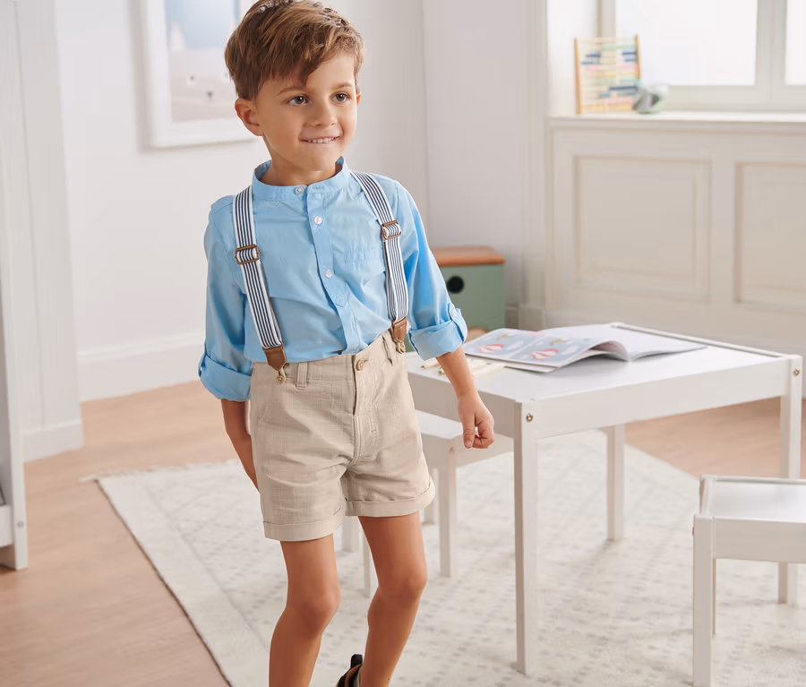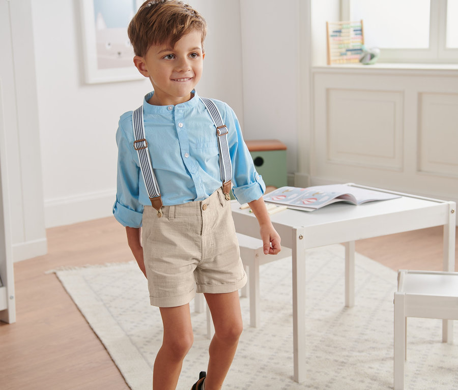 - Kurze Kinderhose mit elastischen, abnehmbaren Hosenträgern