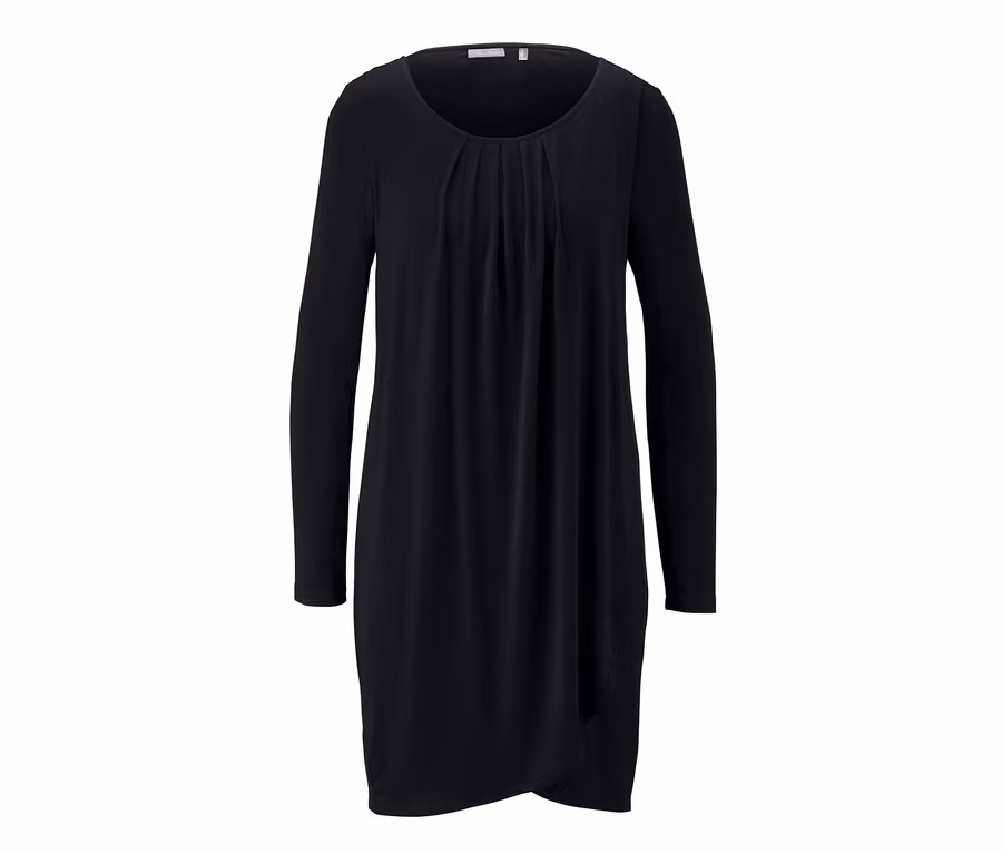 Die besonders weiche Viskose-Stretch-Qualität sowie das eingearbeitete Elasthan sorgen für einen perfekten, formbeständigen Sitz des Kleides und für einen hohen Tragekomfort.