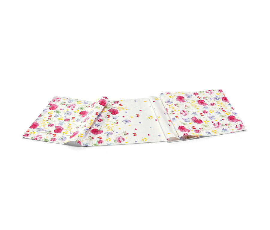 Mit diesem Tischläufer mit hochwertigem floralem Aquarellprint bekommen Tisch und Tafel im Handumdrehen das passende, freundlich-bunte Flair. Er ist aus reiner Baumwolle gefertigt und hat eine Länge von etwa 180 Zentimetern. Man kann den Läufer mit oder ohne Tischdecke nutzen – mit Decke bieten sich helle, frühlingshafte Farben an.