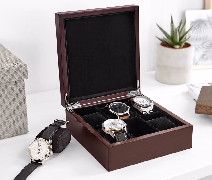 - Mit 6 Kissen für Uhren oder Armbänder