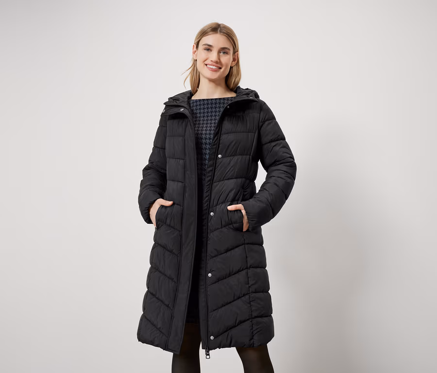 Steppmantel mit Kapuze, schwarz
